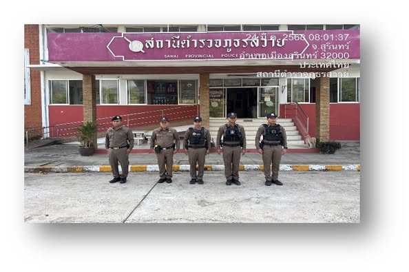 พ.ต.อ.มานิตย์ สร้อยจิตรผกก.สภ.สวาย,ว่าที่ พ.ต.ต.มานพ ขอชูกลาง สวป.สภ.สวาย พร้อมด้วยชุดปฏิบัติการชุมชนยั่งยืน สภ.สวาย ร่วมพิธีเปิดโครงการตำบลบำบัดอย่างยั่งยืน เพื่อแก้ไขปัญหายาเสพติดแบบครบวงจรตามยุทธศาสตร์ชาติ ประจำปีงบประมาณ 2568 12 มีนาคม 2568 โดย adminsawai01