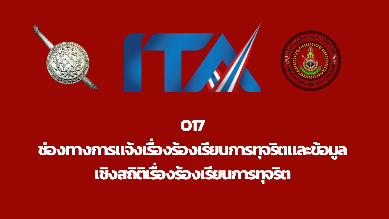 O17 ช่องทางการแจ้งเรื่องร้องเรียนการทุจริตและข้อมูลเชิงสถิติเรื่องร้องเรียนการทุจริต คลิกเพื่อแจ้งเร
